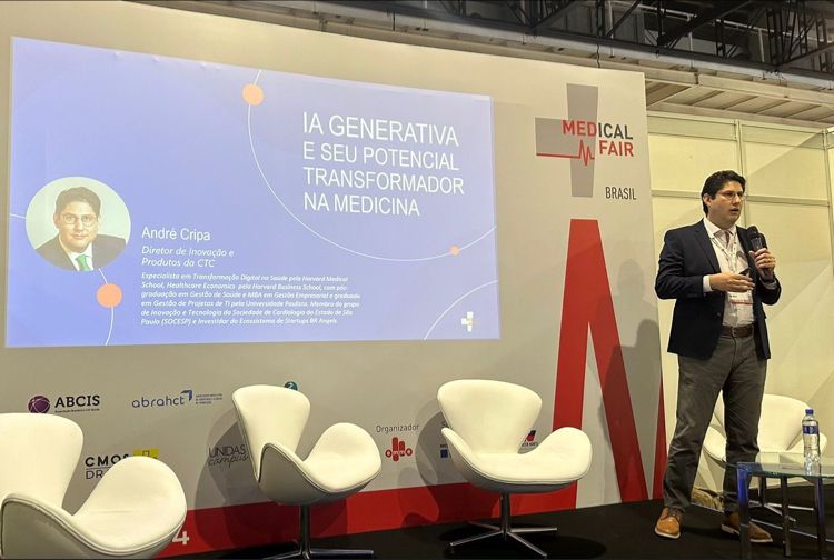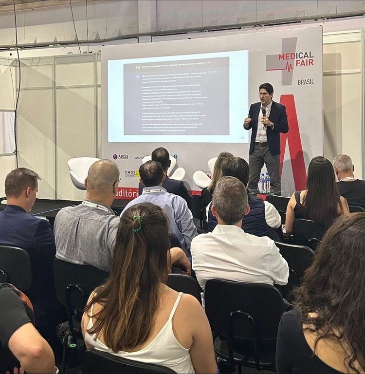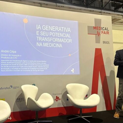 Estivemos em duas palestras incríveis com os temas: “Como as instituições de saúde estão interoperando?”, apresentado pelo CMIO da CTC, Guilherme Zwicker; e, “IA Generativa e seu potencial transformador na medicina”, apresentado pelo Diretor de Inovação e Produtos, André Cripa.